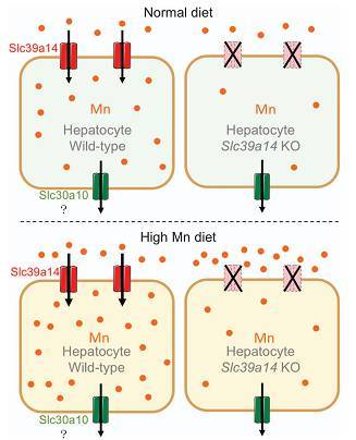 锰是人体必需的微量元素,但是锰的过量蓄积会引起神经毒性。有研究发现,跨膜金属转运蛋白 SLC39A14 的基因突变会导致脑中的锰蓄积并呈现早发型帕金森样病变,因此也提出脑组织锰蓄积是由于 SLC39A14 缺失导致肝脏的锰摄取和外排发生障碍的科学假设 [ref 1]。究竟 SLC39A14 在锰代谢中起到什么作用?脑组织中锰蓄积是肝脏的 SLC39A14 缺失导致的吗?
