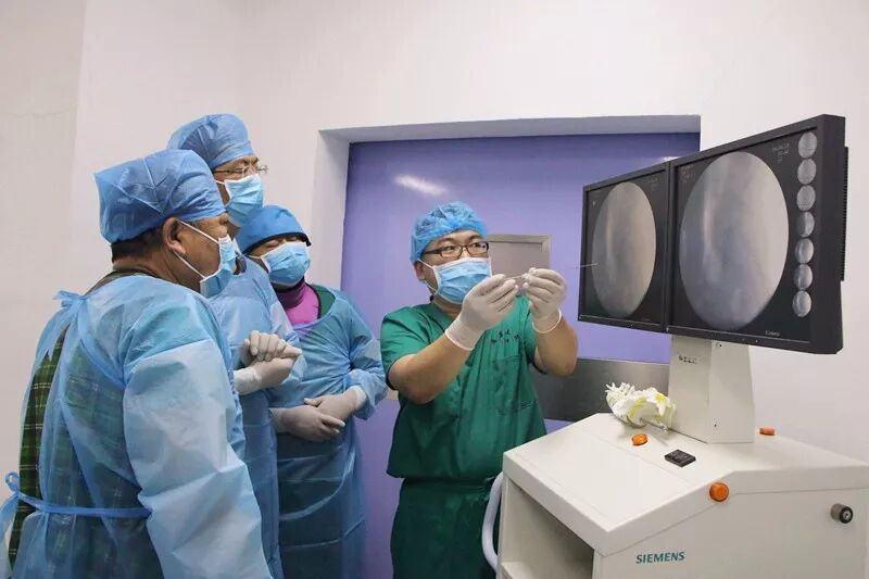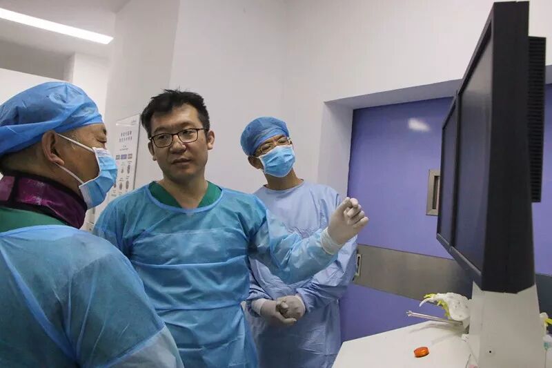 杨贺军医生、李星晨医生与学员们熟悉器械设备