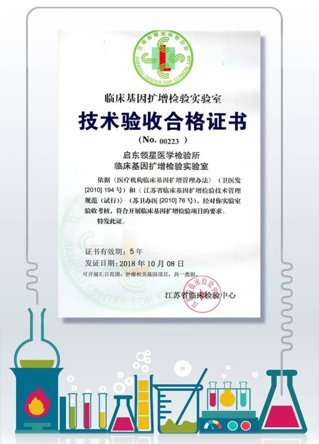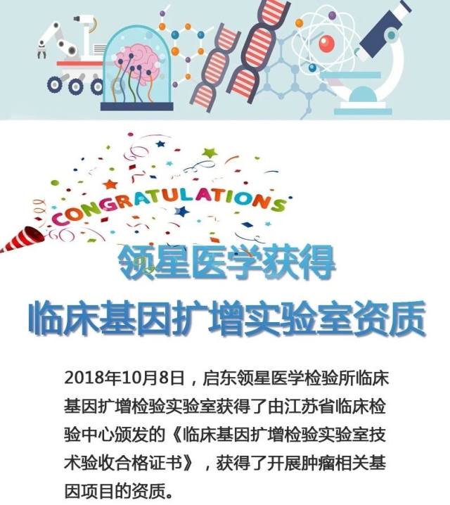 《临床基因扩增检验实验室管理办法》是为规范临床基因扩增检验实验室管理,保证临床基因扩增检验质量,使临床基因诊断和治疗更为科学、合理而制定的办法。由卫生部临床检验中心及省、自治区、直辖市临床检验中心负责对所辖行政区域内的临床基因扩增检验实验室进行质量监督管理工作。领星医学检验所此次获得的资质证明为肿瘤相关基因项目,旗下康新源、康安源等检测产品均与该资质相符合,具备了开展此类基因检项目的硬件及技术能力。