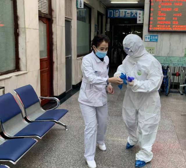 (1月23日,医院确诊一例新型冠状病毒肺炎患者,感控科科长藏伟佳、急诊科护士长臧玉环挺身而出,认真做好患者的看护及转诊工作。)