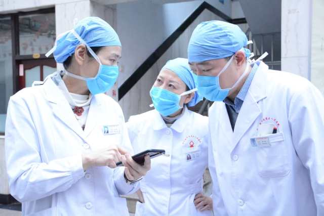 在布置单位内部防控工作中,领导班子、院感科、医务科、护理部几天几夜连续备战,从筹备防护物资到安排人员值班,从加强人员培训到实际指导人员工作,从捋顺工作流程到确诊患者转诊,他们离疫情最近,了解疫情最多,离家人却最远。他们家中有假期渴望他们陪伴的女儿,也有年迈等待他们回家吃团圆饭的父母,还有输尿管结石急性发作独自去碎石及输液的伴侣,面对疫情他们都是「战士」,展现出了「越是艰险越向前」的担当精神。