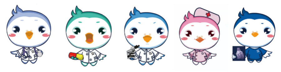 白鸽队以小朋友喜欢的医务人员卡通形象来方便医患沟通。整组作品以飞翔的白鸽为形象设计,寓意,和平、友谊、团结、圣洁,象征一切为了儿童健康,不懈努力,腾飞的儿院人。