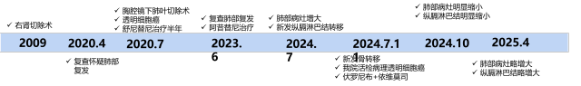 2023 年 6 月患者至杭州市第九人民医院复查 CT 提示双肺结节(最大径 14mm),考虑转移,并给予「阿昔替尼」治疗;