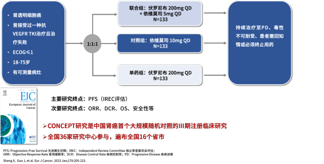 注册研究 CONCEPT 研究是国内开展的首个大规模晚期肾癌靶向治疗的双盲随机对照 III 期研究: