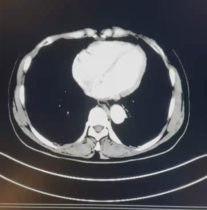 CT(2025.4.7):1. 左肾上腺肿块较前明显增大;2. 左肾结节及肿块部分较前增大;3. 腹膜后淋巴结同前;4. 右侧胸膜结节状增厚较前增大,建议追踪;5. 余双肺情况基本同前。